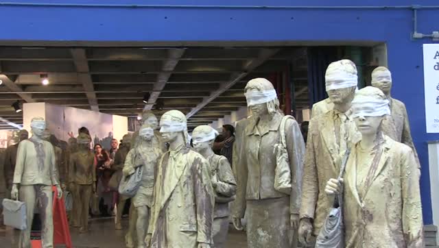 Dozens of male and female executives, dressed in business attire, carrying suitcases, bags, cell phones and documents, covered in mud, blindfolded, walk very slowly, blending in with passers-by, destabilizing the daily flow of the city's financial and political center. Blind seeks to politically intervene in the city and provoke different readings.